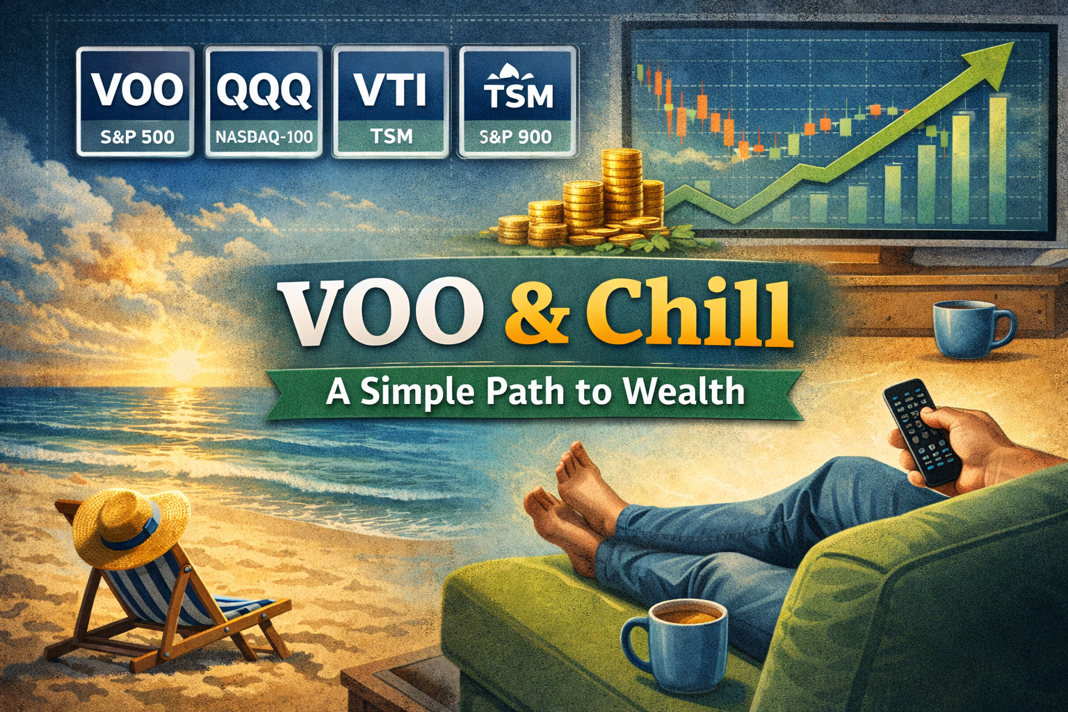 The phrase is a play on the popular internet meme “Netflix and chill,” but the concept behind it is serious. The idea is simple: instead of constantly trading stocks or trying to predict the market, you just invest consistently in a broad market ETF like VOO, VTI, or sometimes QQQ, and then… you relax.